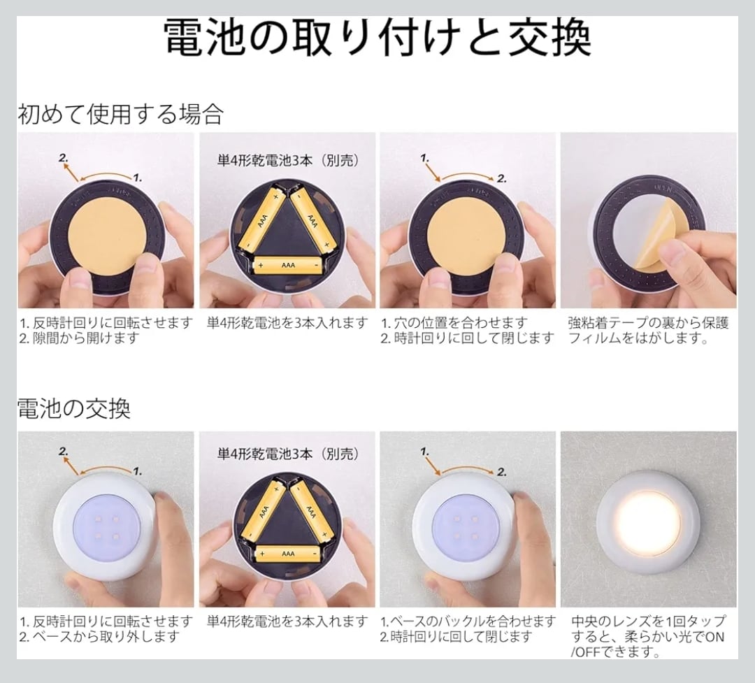 ※LEDライトは人感センサーではありません。中央レンズをタップすることで点灯します。