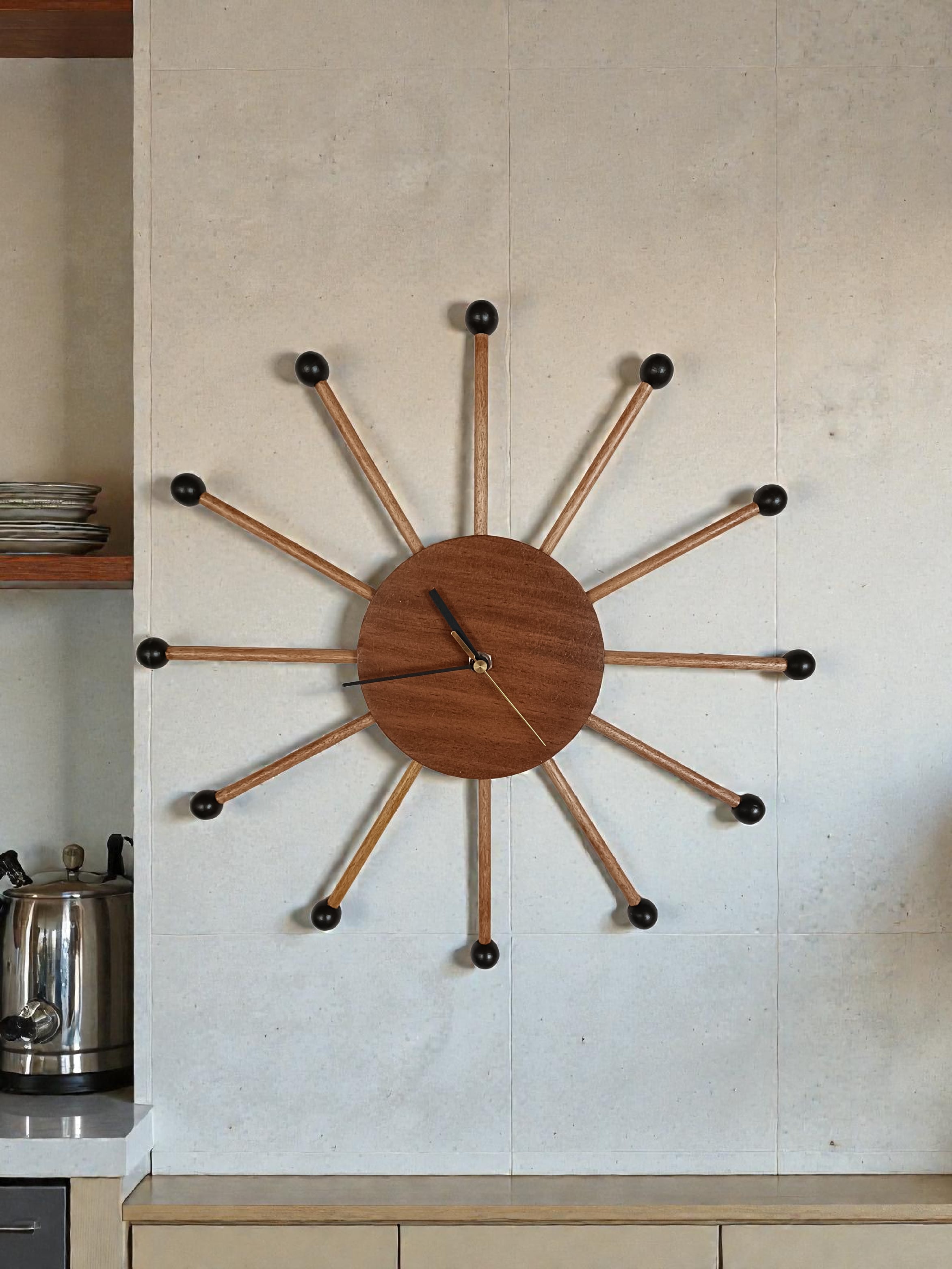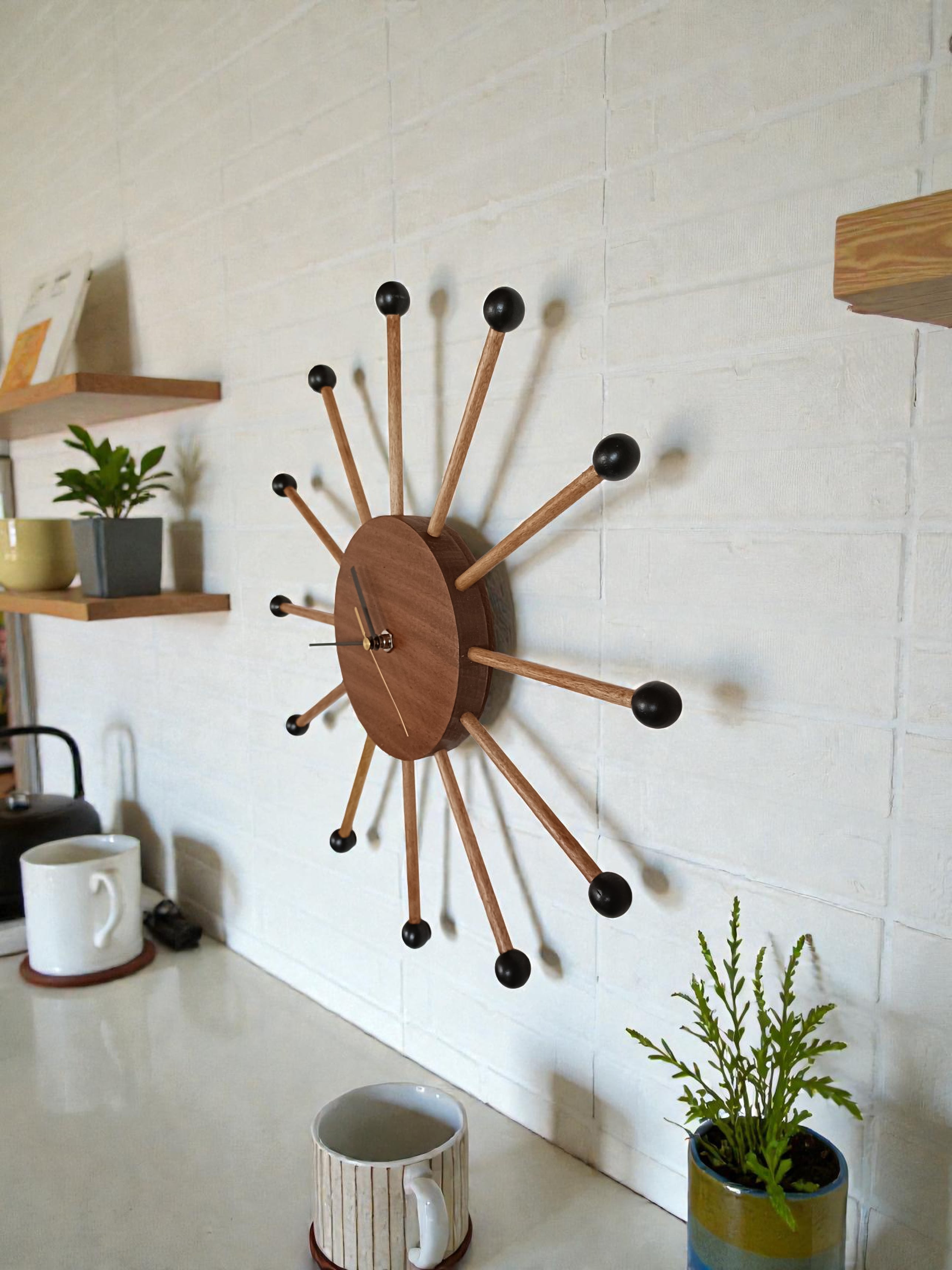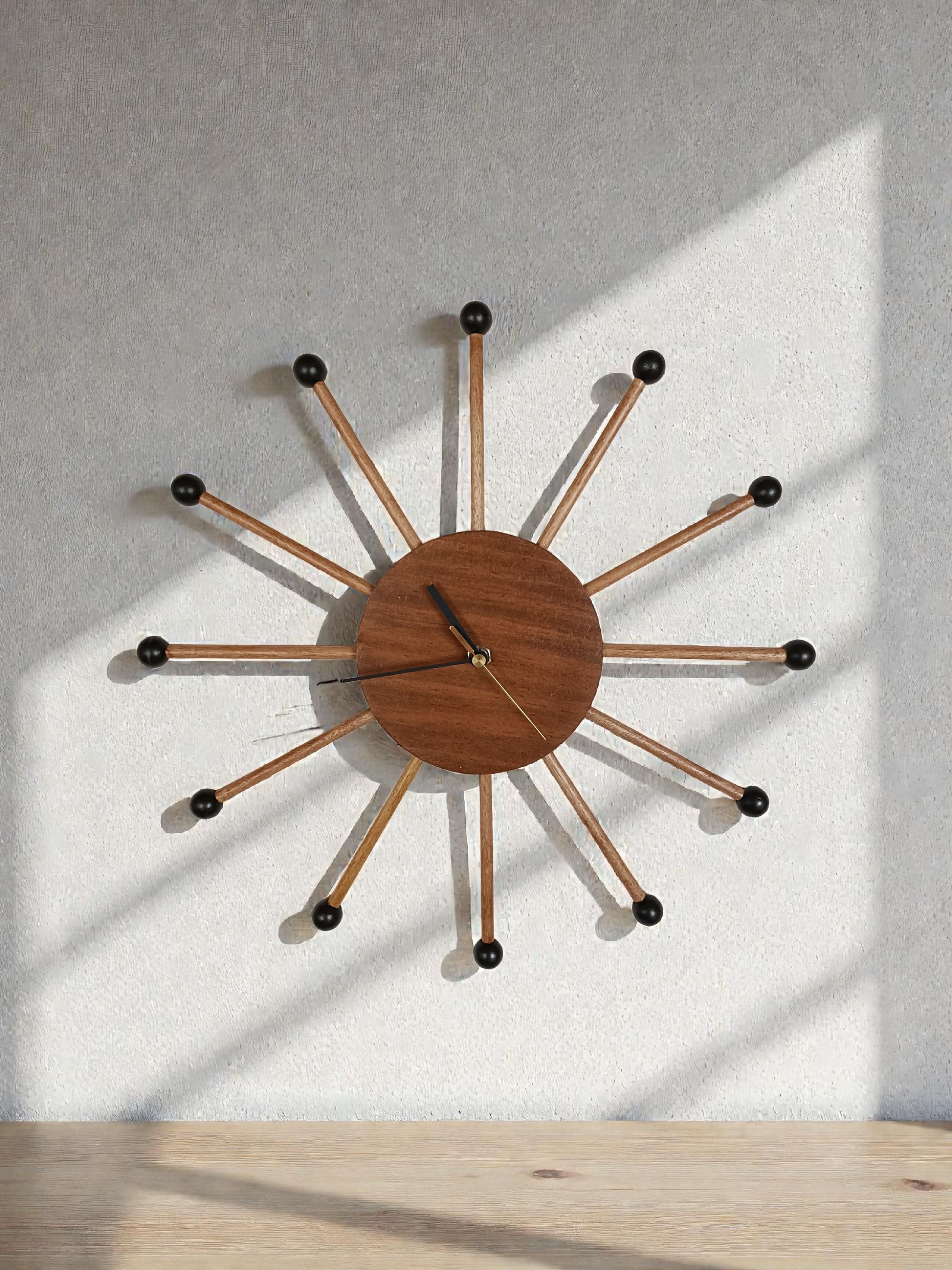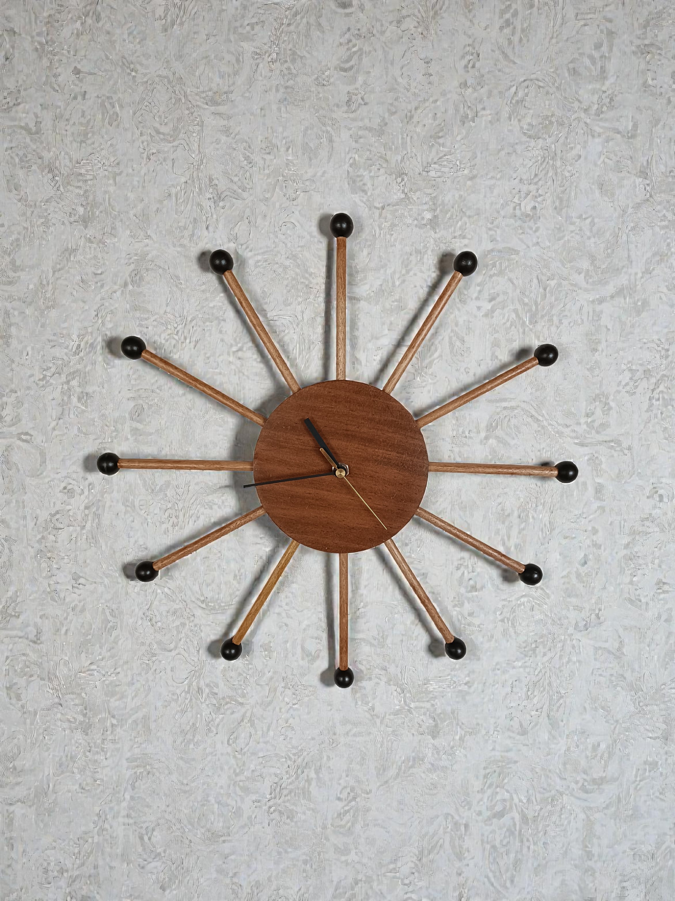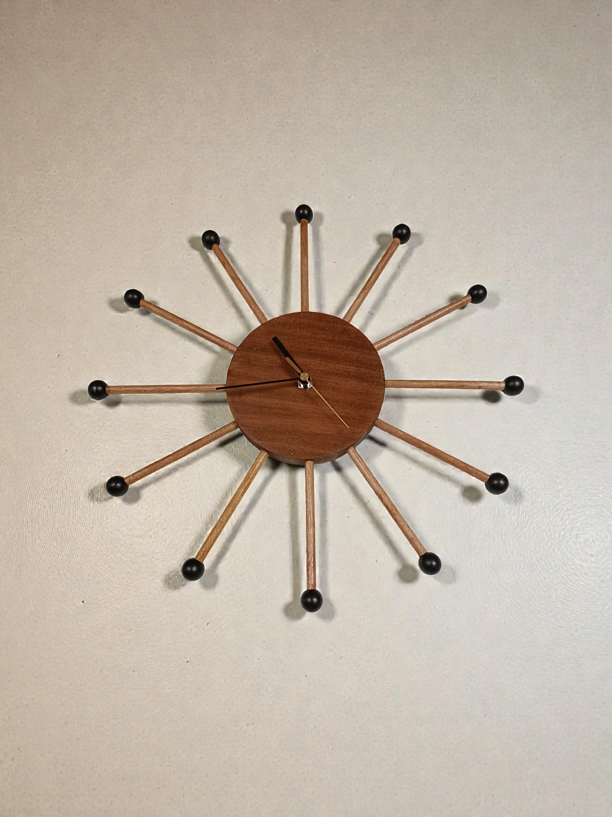 音楽室の隅で役目を終えた木琴のマレット(バチ)を壁掛け時計にアップサイクルしました。